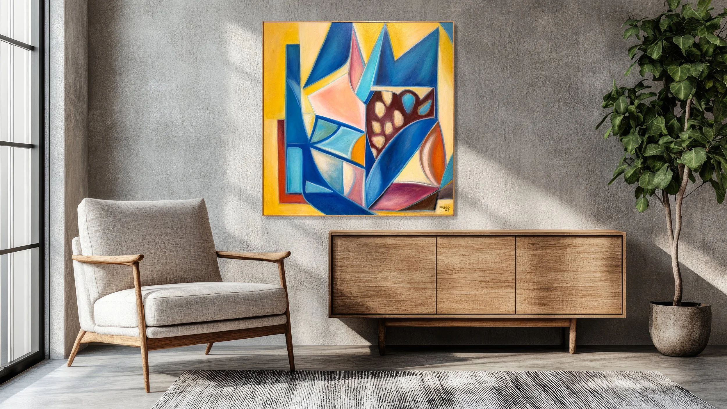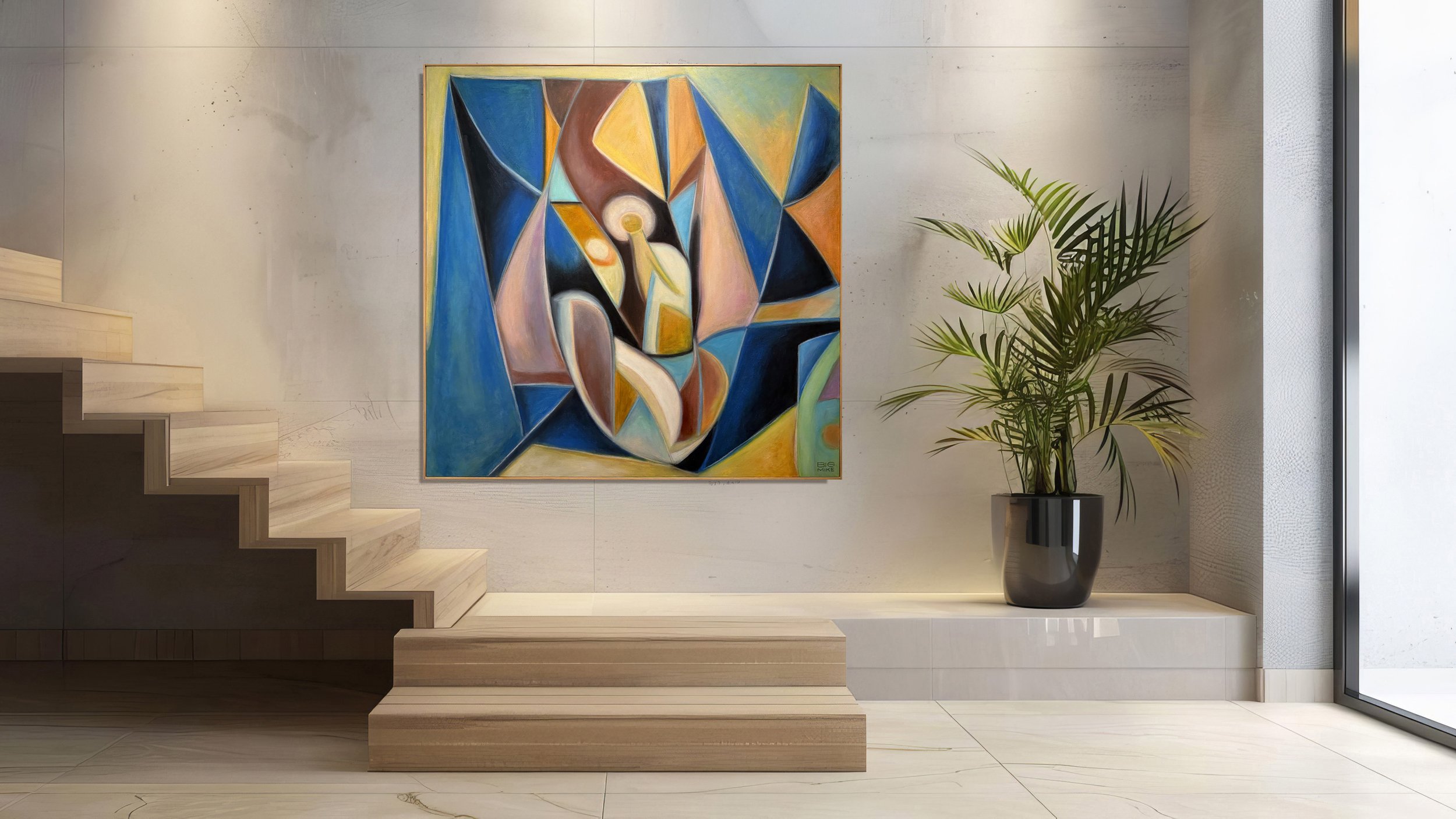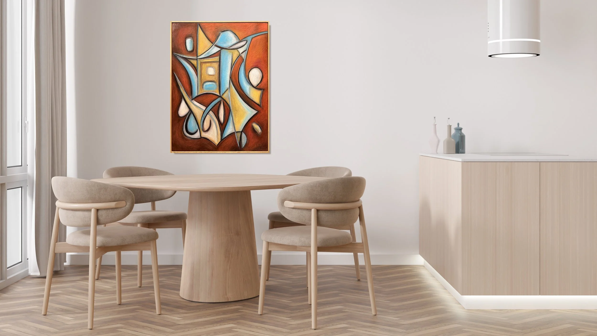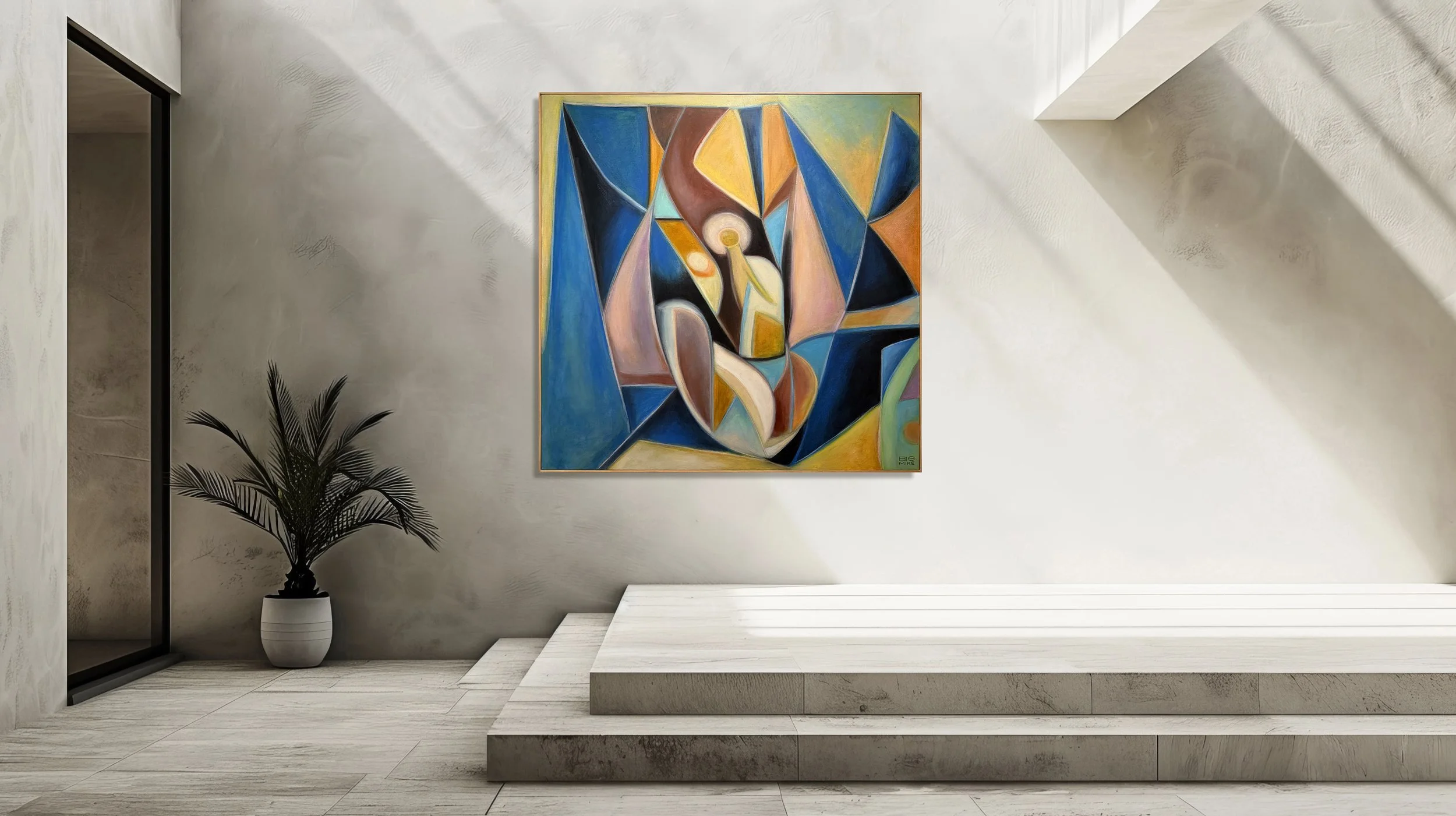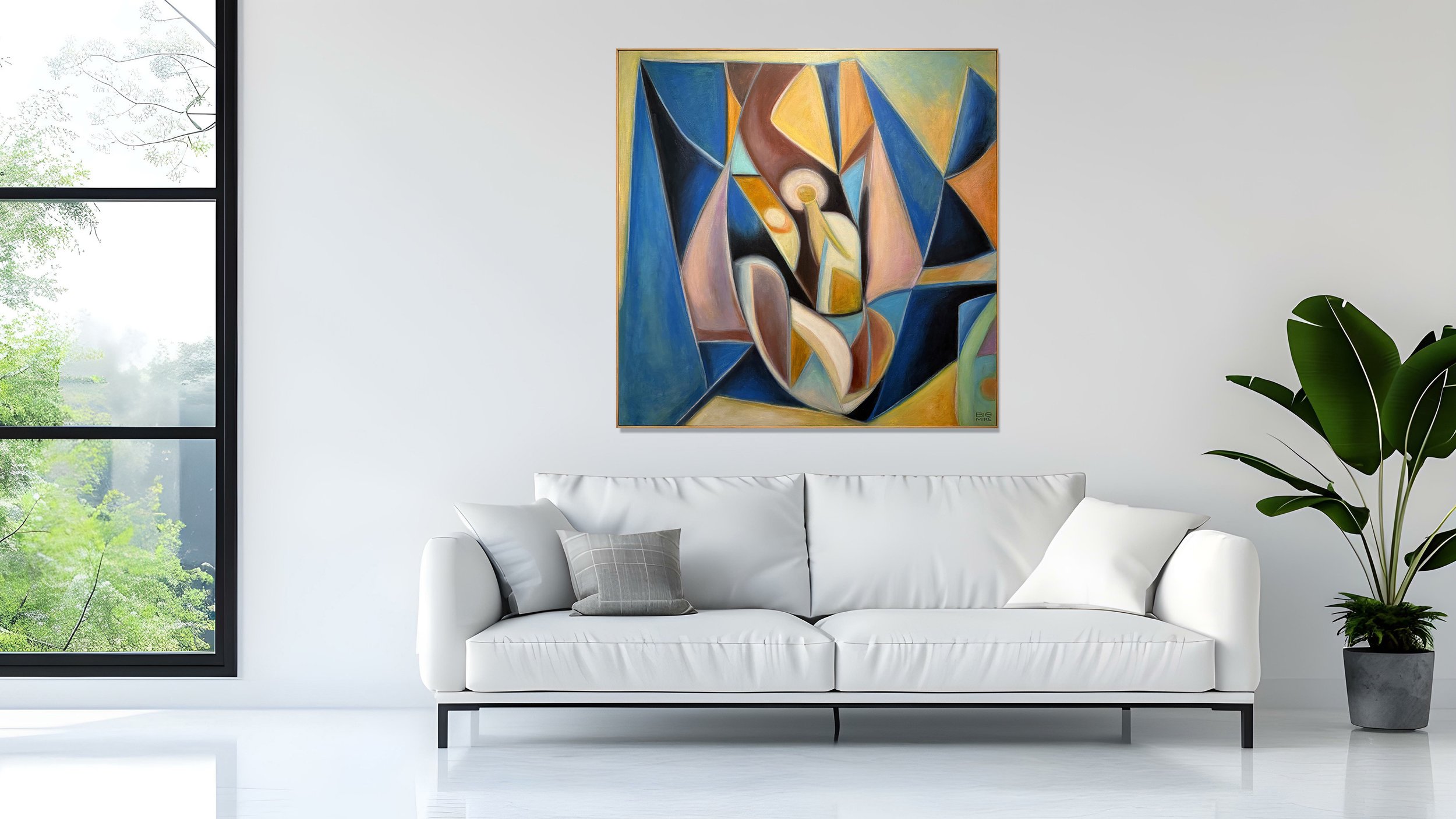—I explore the tensions within American society, juxtaposing the ideals of unity and family with the realities of division and conflict. Through bold colors and abstract forms, the painting reflects the fractured yet interconnected nature of the country's diverse cultural landscape, inviting viewers to contemplate both the beauty and challenges of belonging.