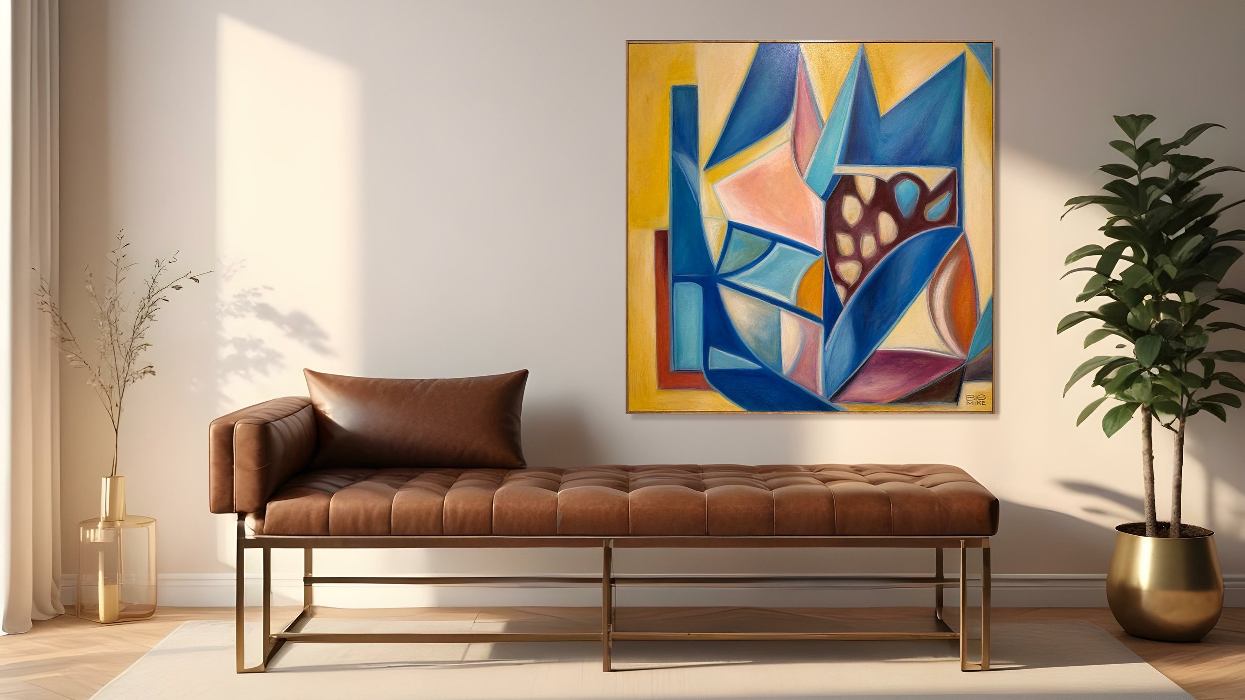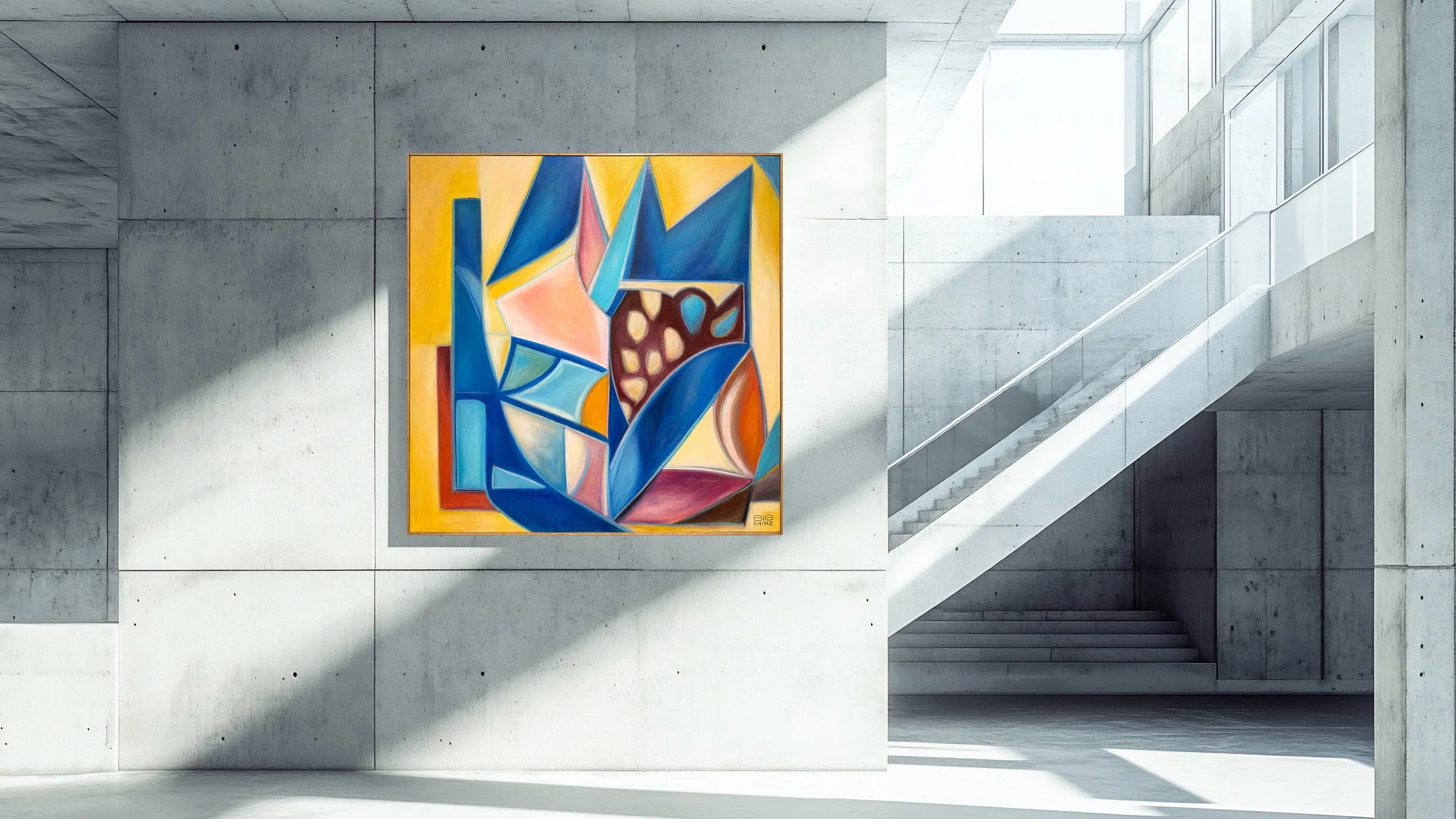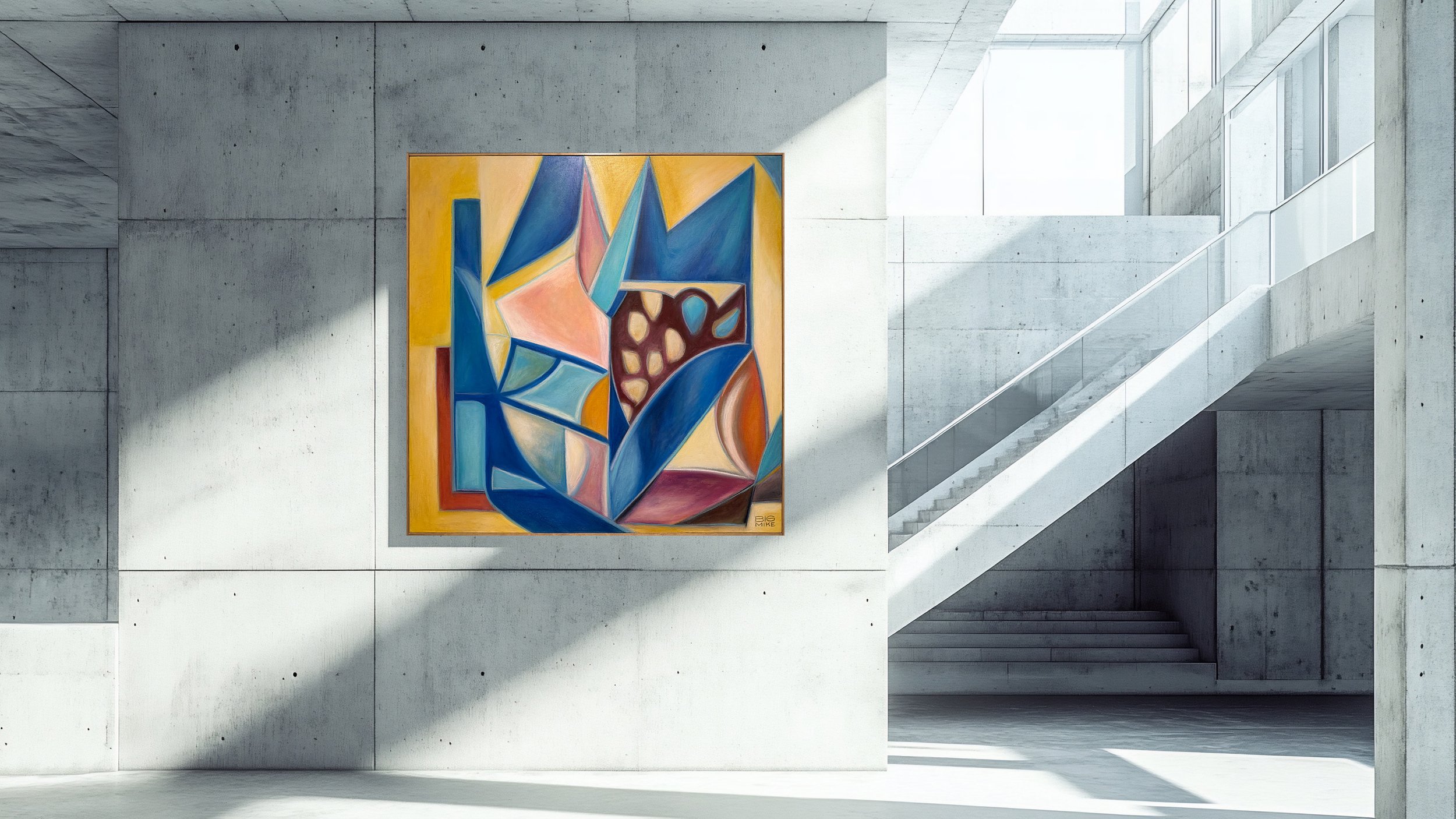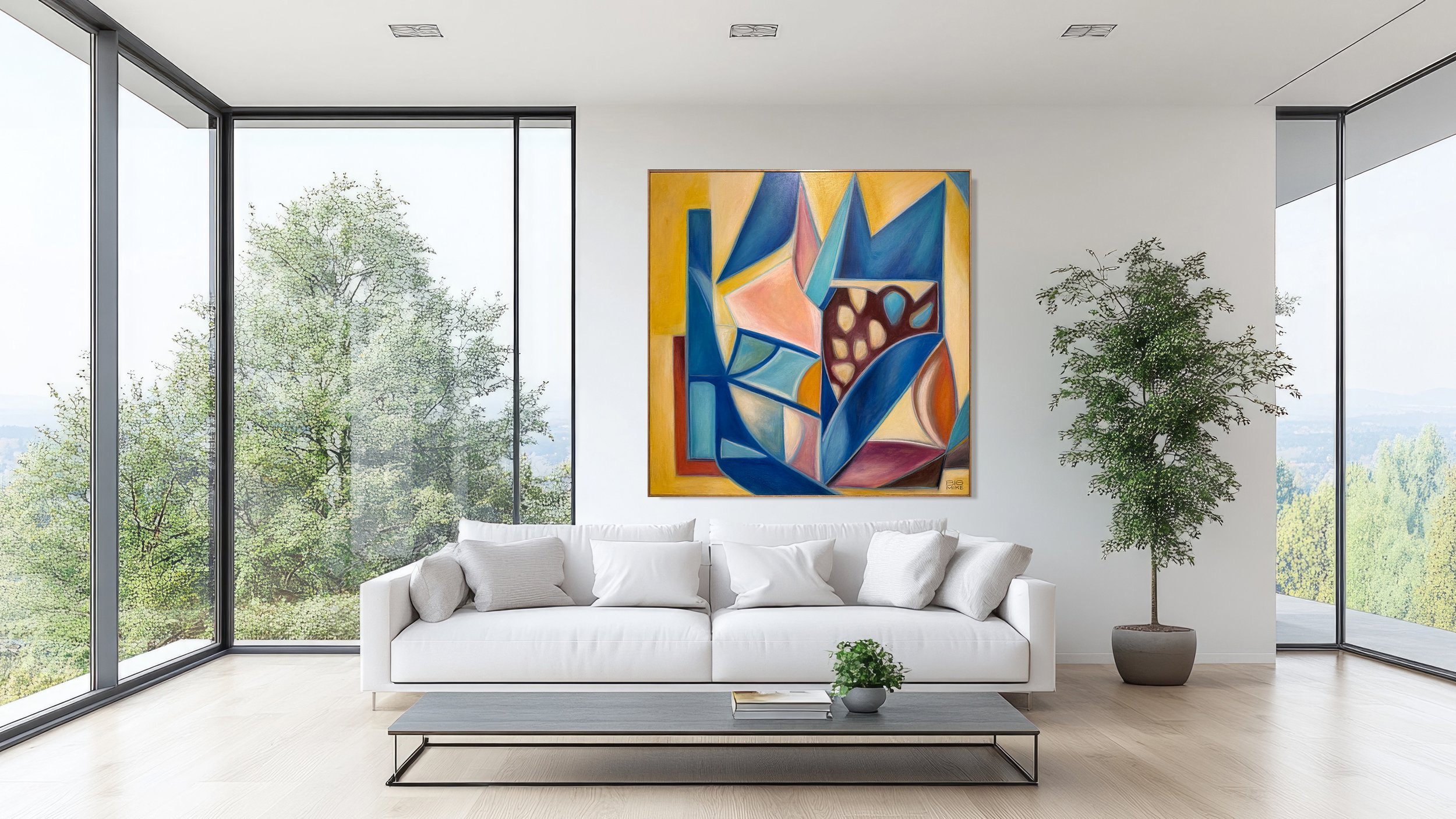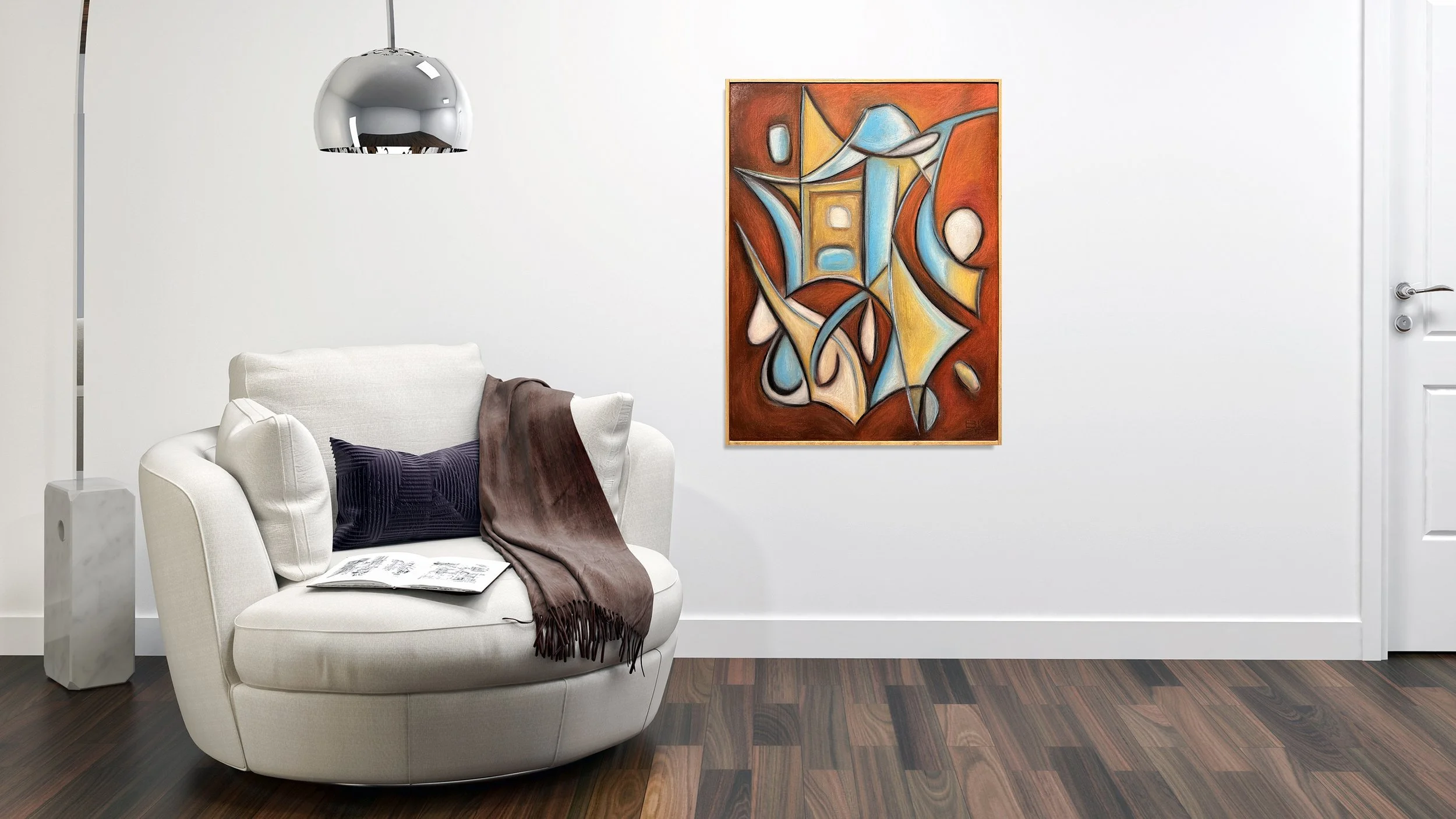 —I explore the tensions within American society, juxtaposing the ideals of unity and family with the realities of division and conflict. Through bold colors and abstract forms, the painting reflects the fractured yet interconnected nature of the country's diverse cultural landscape, inviting viewers to contemplate both the beauty and challenges of belonging.