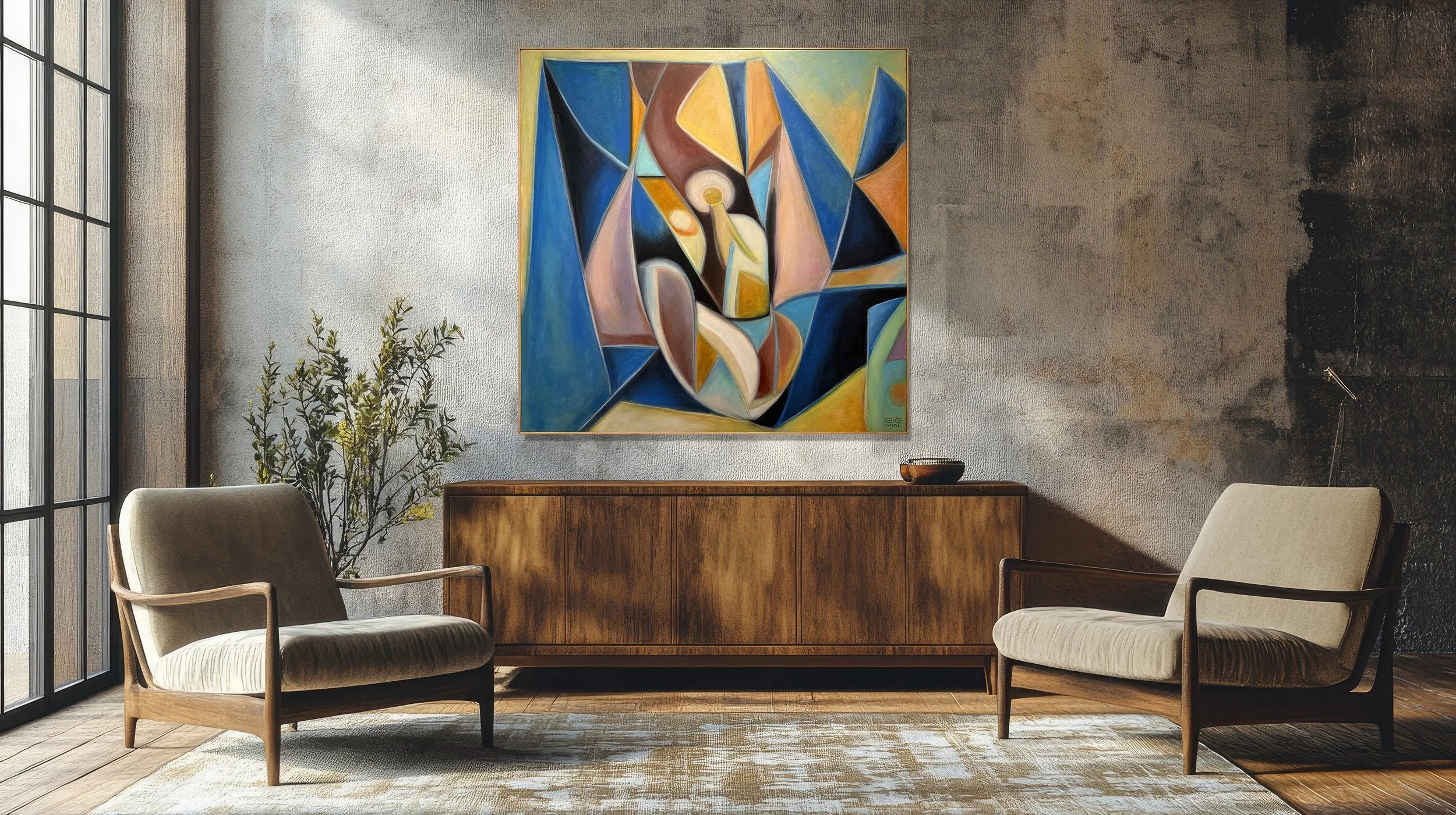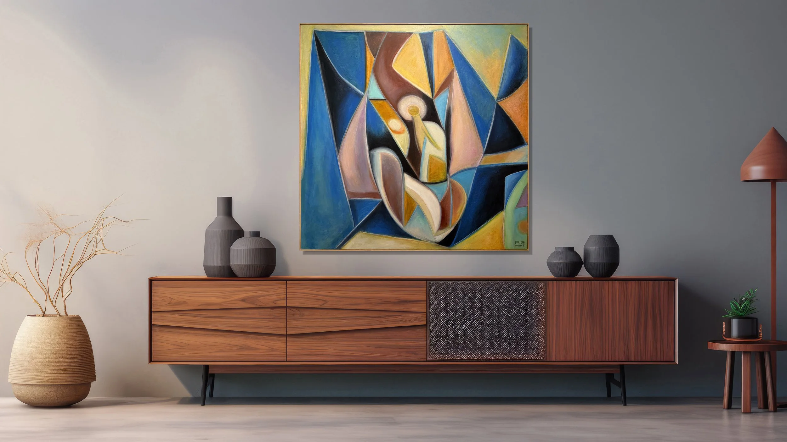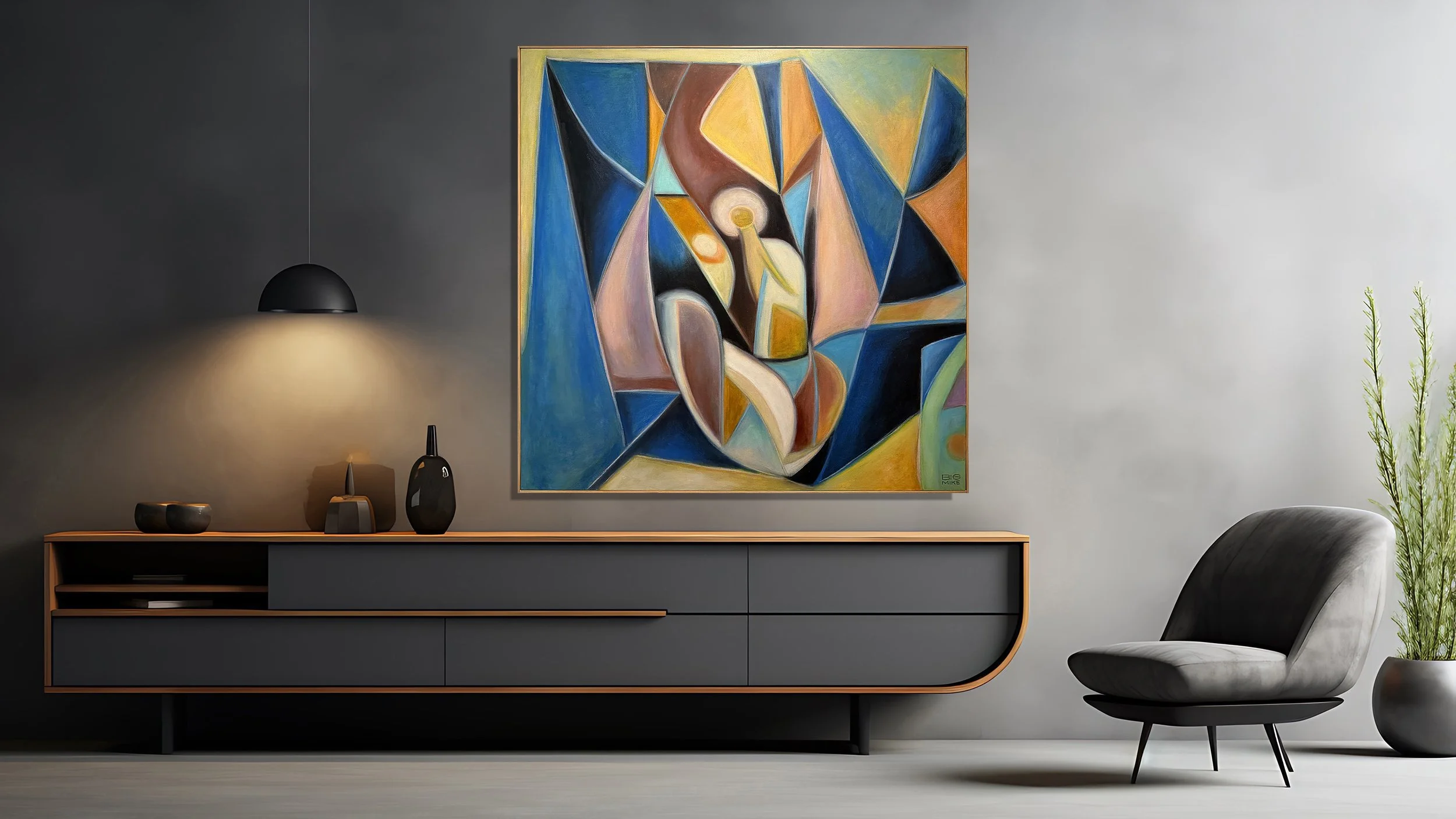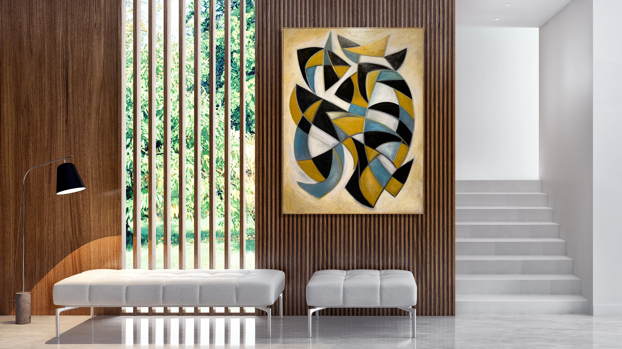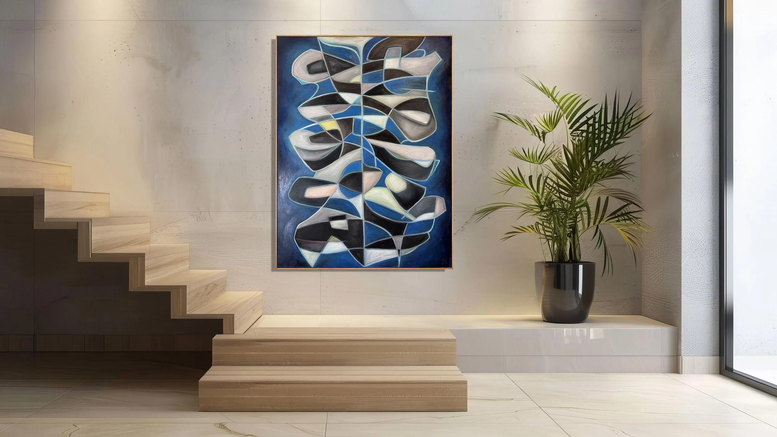 —I explore the tensions within American society, juxtaposing the ideals of unity and family with the realities of division and conflict. Through bold colors and abstract forms, the painting reflects the fractured yet interconnected nature of the country's diverse cultural landscape, inviting viewers to contemplate both the beauty and challenges of belonging.