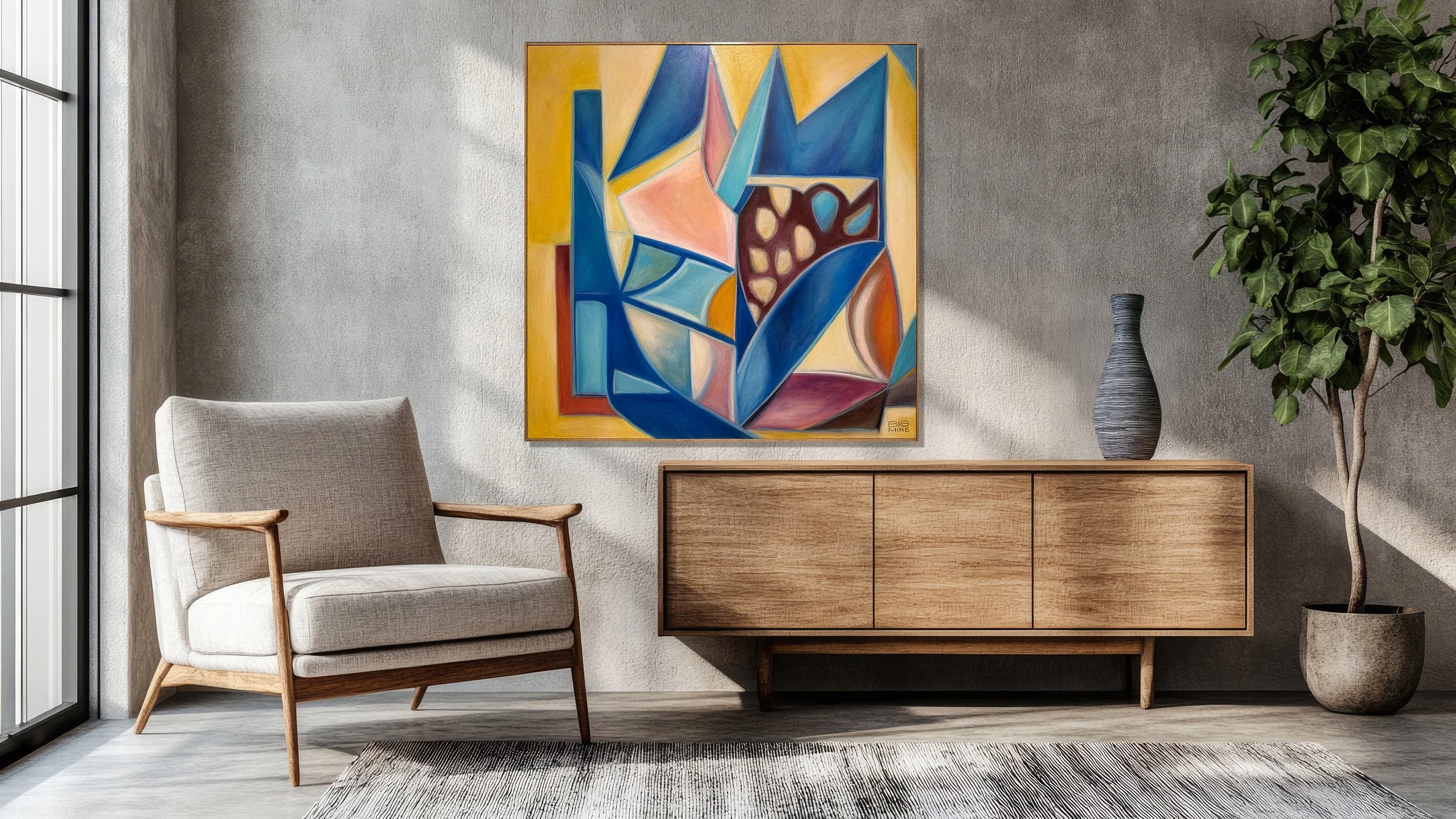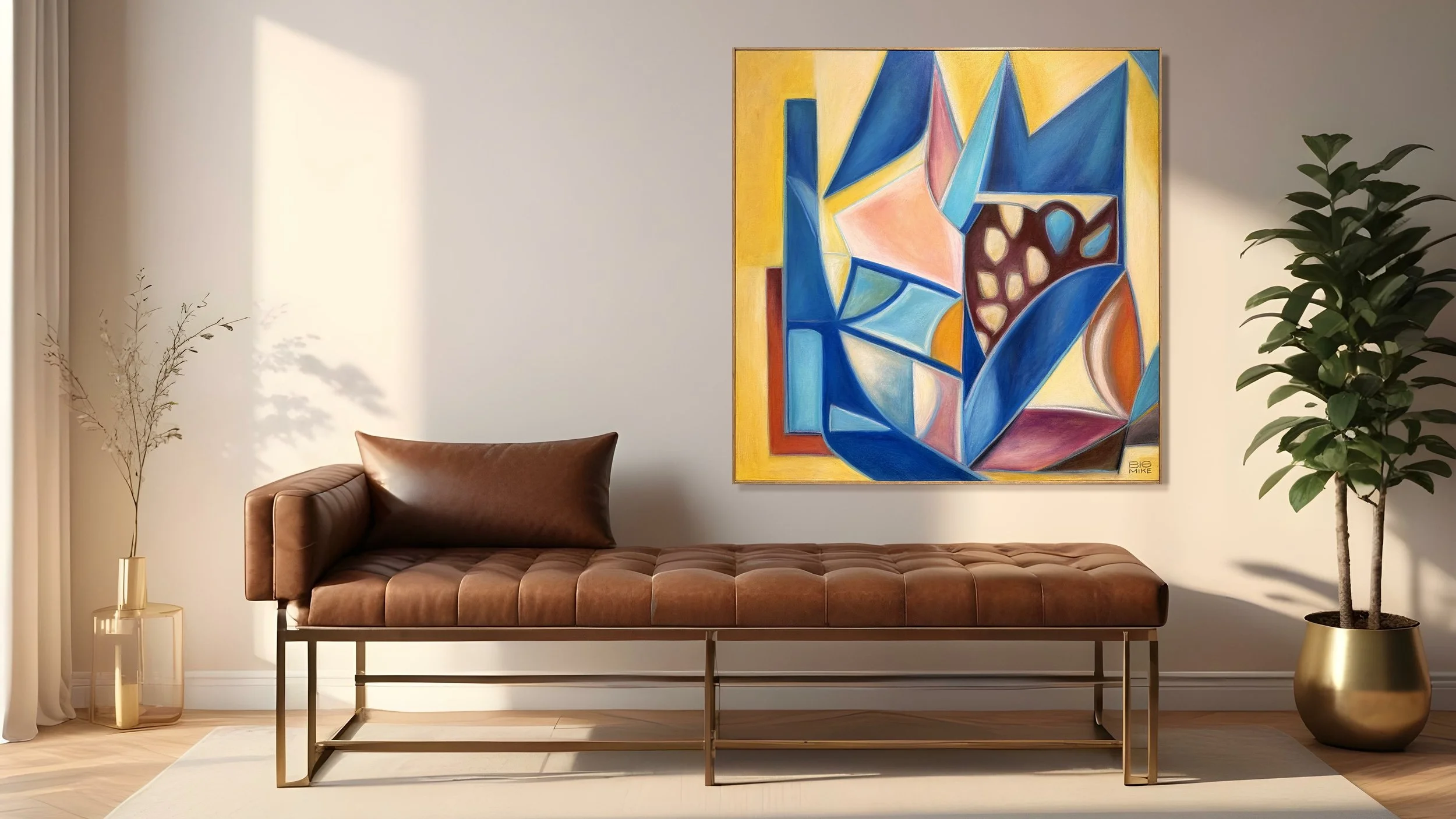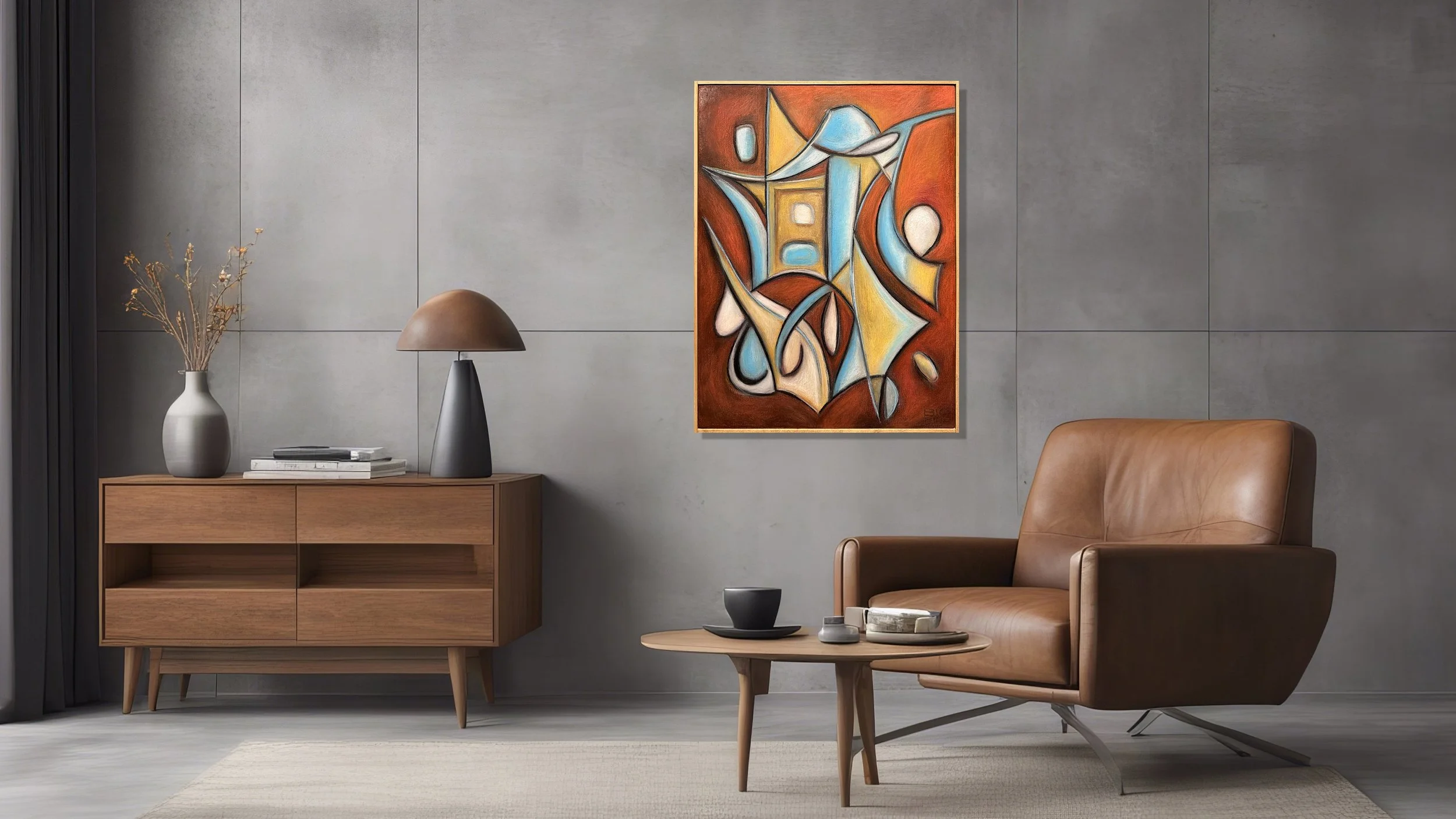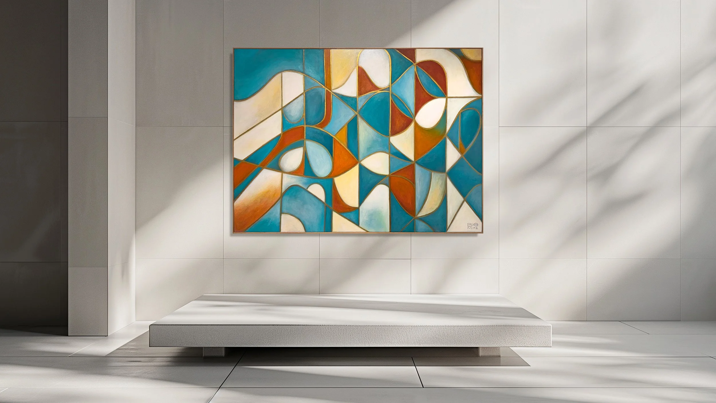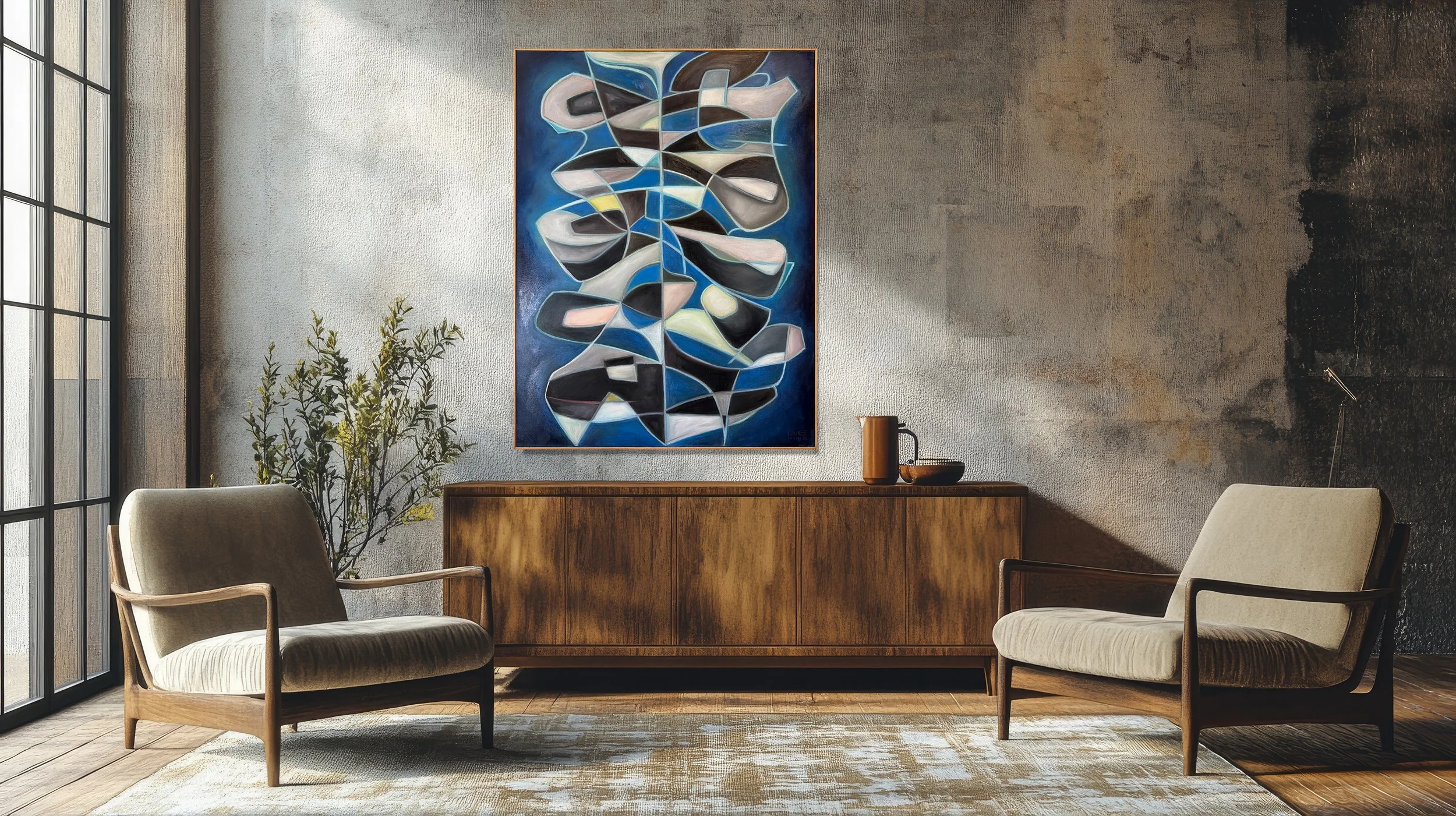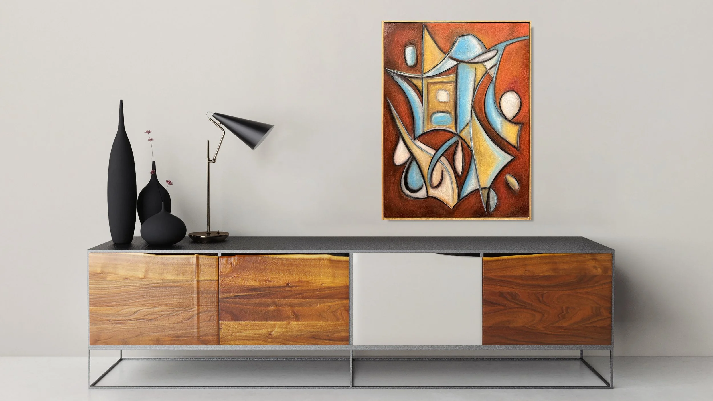 —I explore the tensions within American society, juxtaposing the ideals of unity and family with the realities of division and conflict. Through bold colors and abstract forms, the painting reflects the fractured yet interconnected nature of the country's diverse cultural landscape, inviting viewers to contemplate both the beauty and challenges of belonging.
