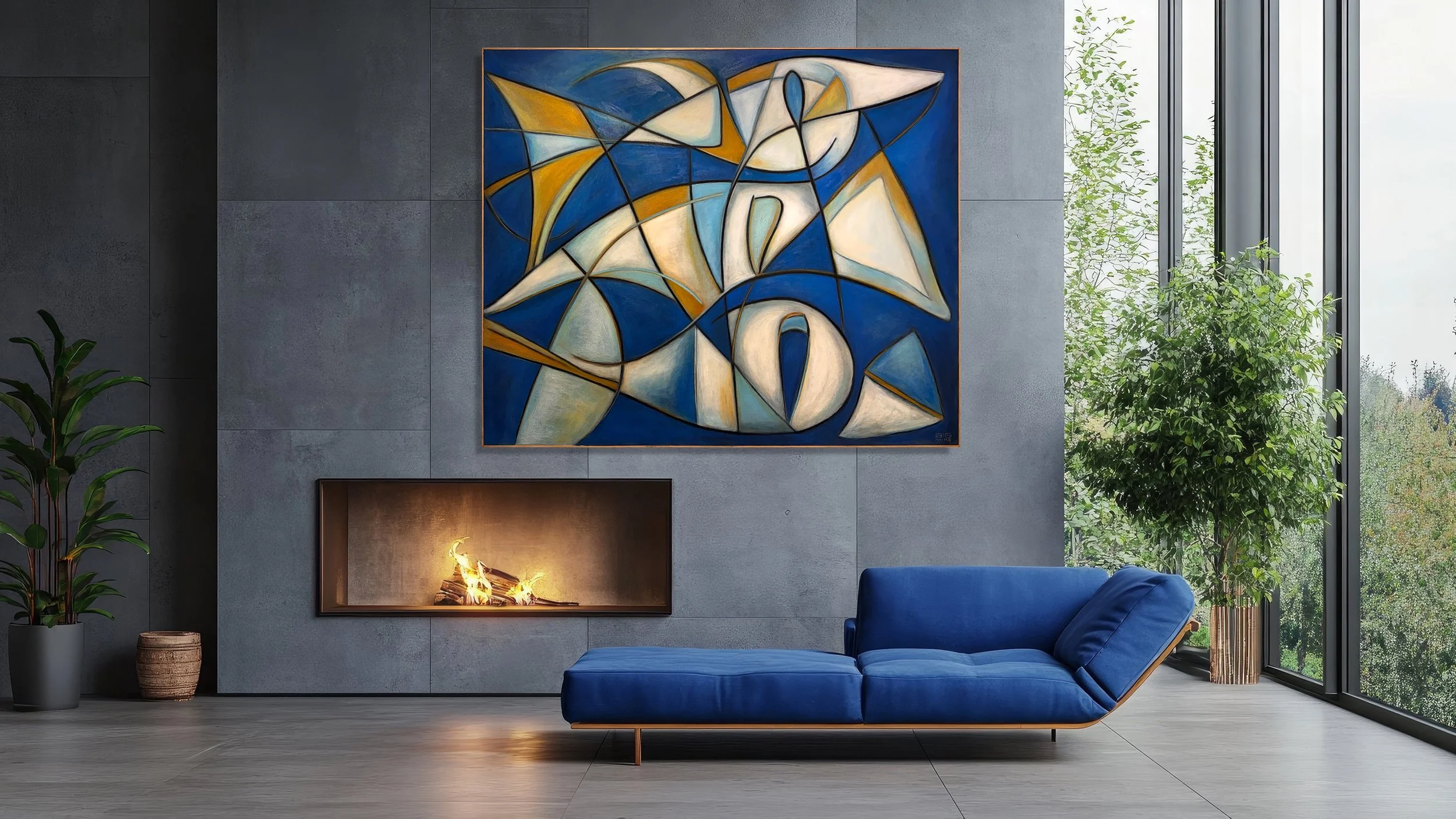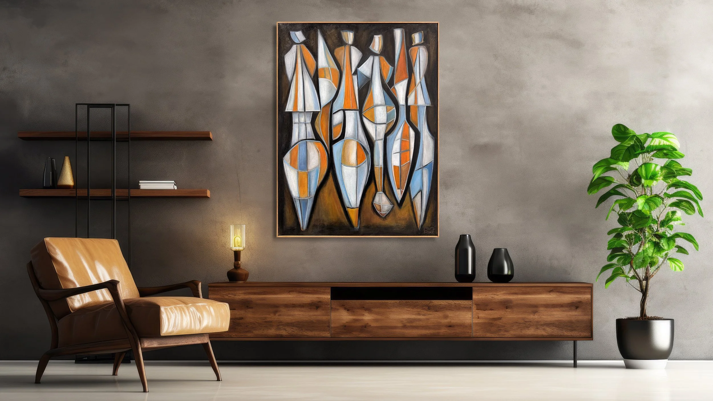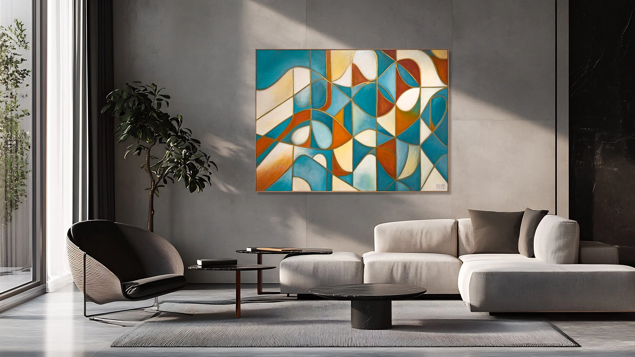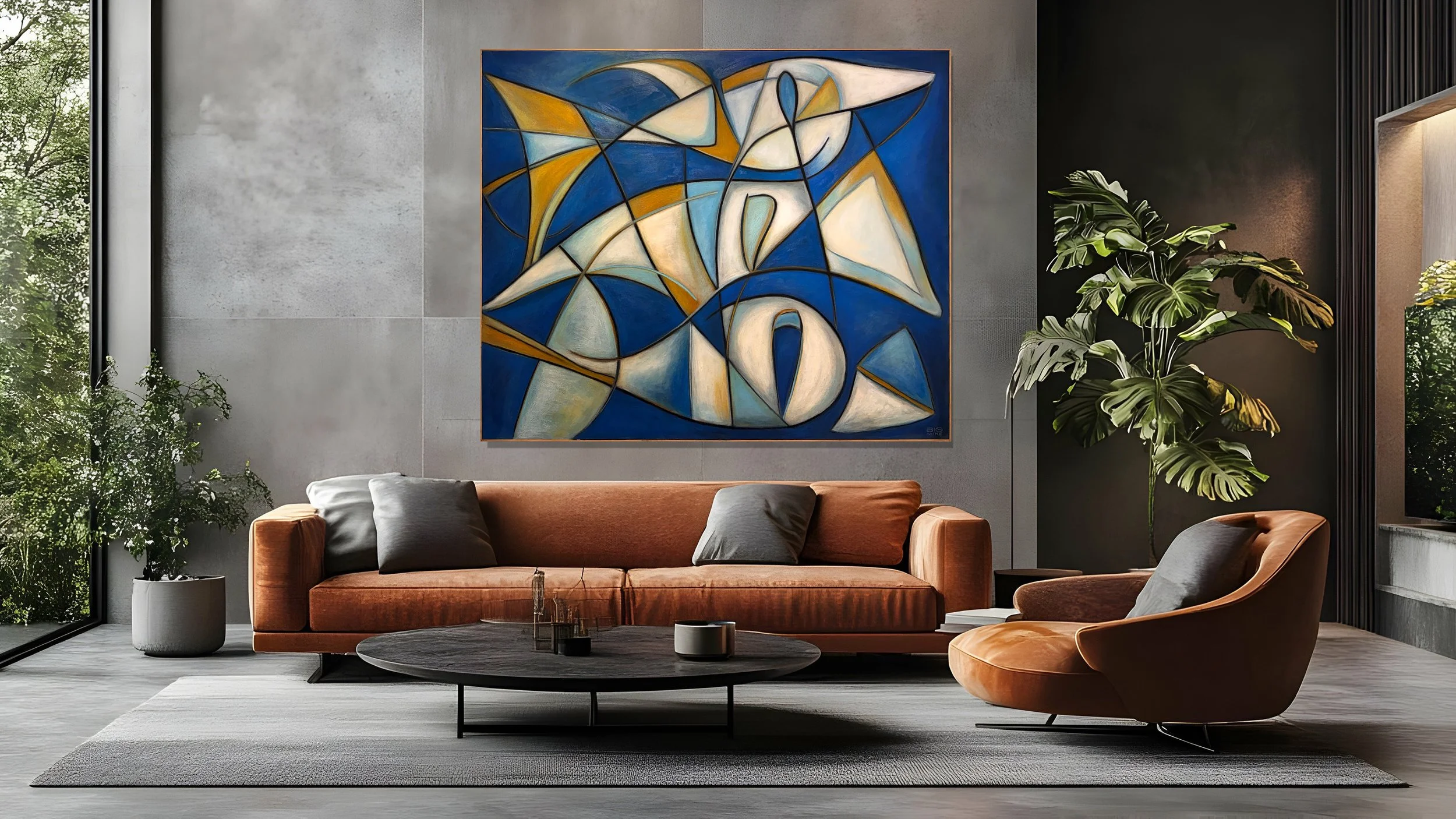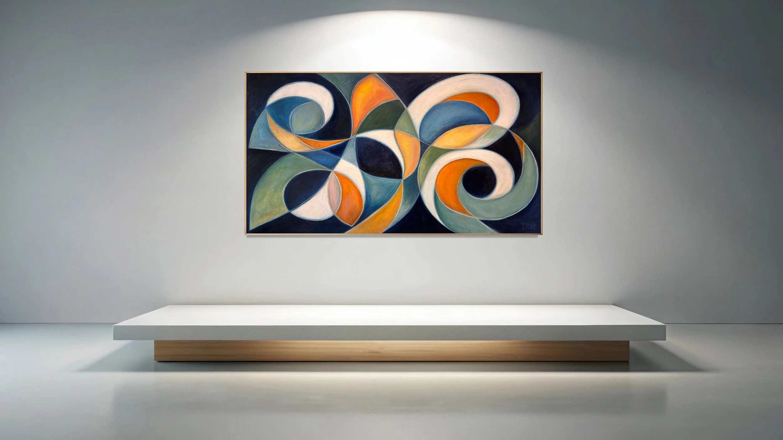 —I explore the tensions within American society, juxtaposing the ideals of unity and family with the realities of division and conflict. Through bold colors and abstract forms, the painting reflects the fractured yet interconnected nature of the country's diverse cultural landscape, inviting viewers to contemplate both the beauty and challenges of belonging.