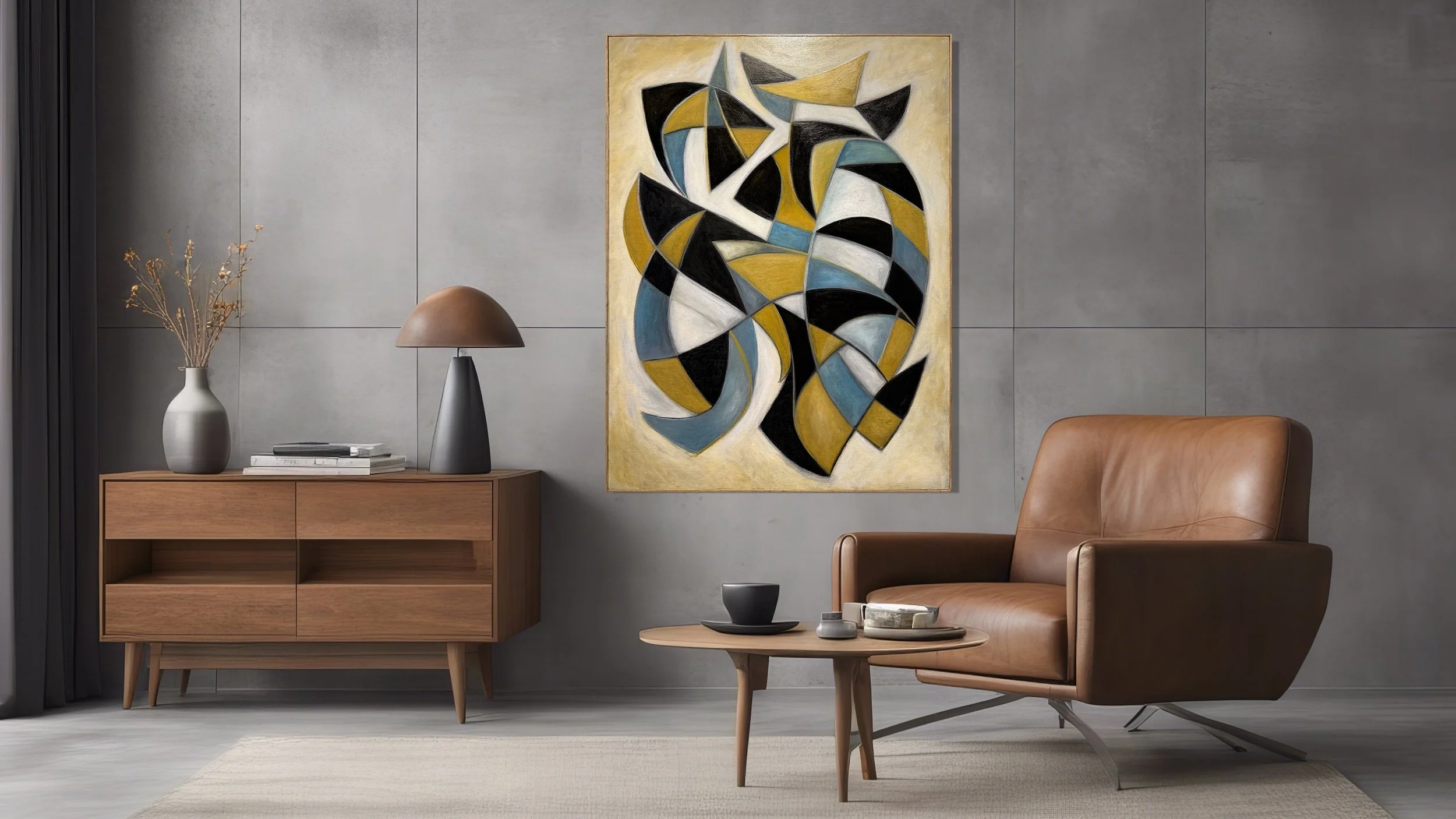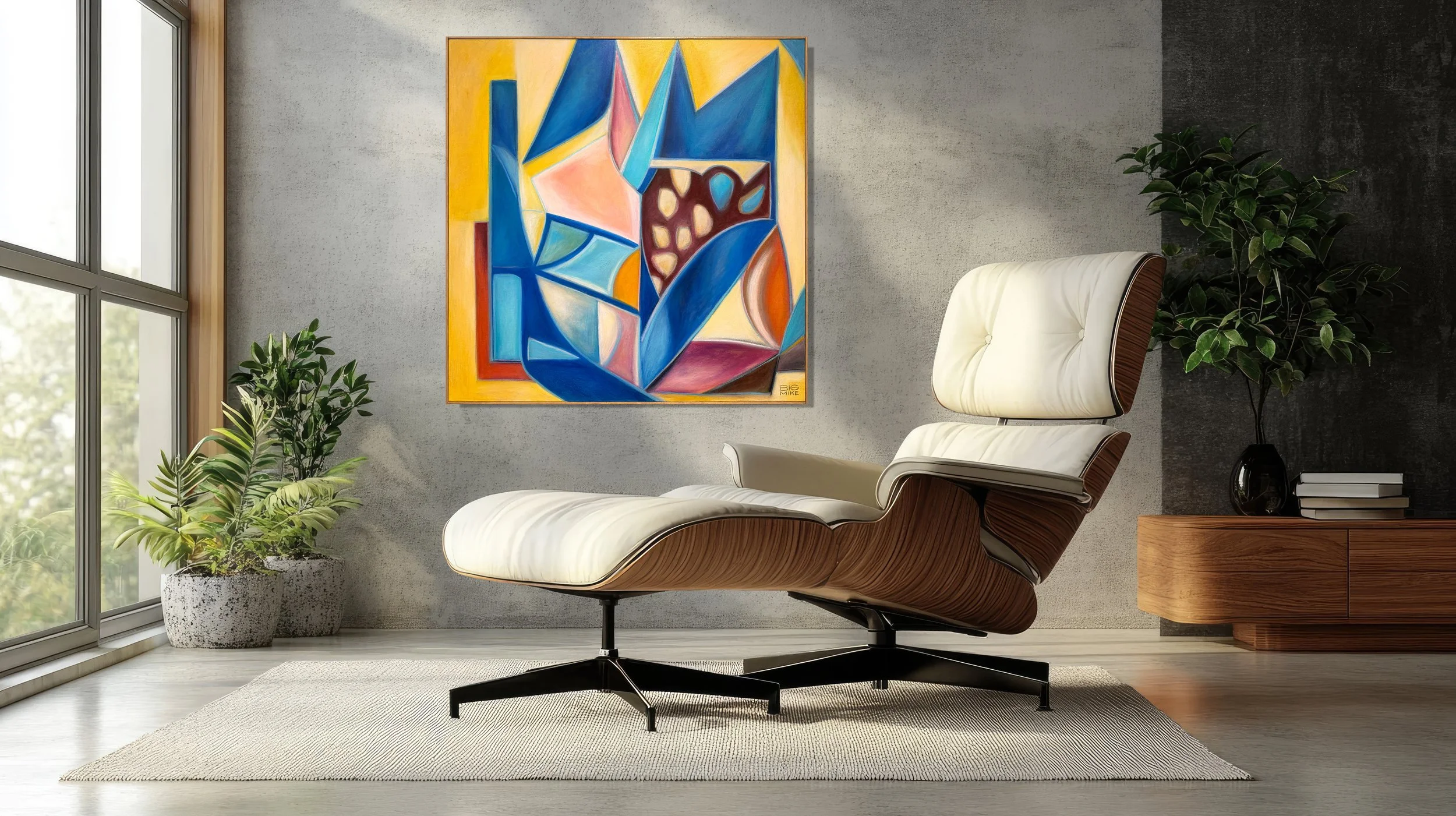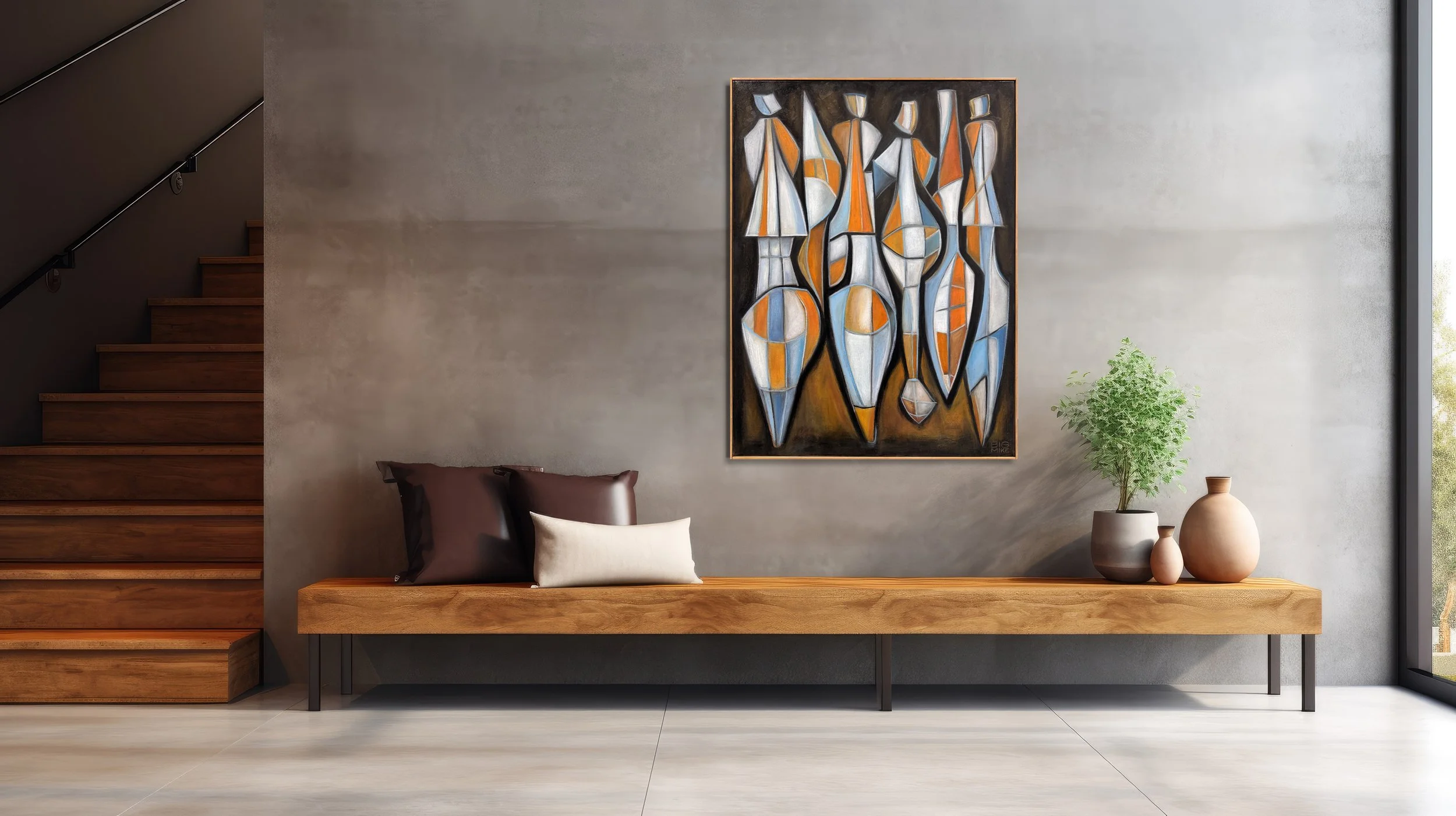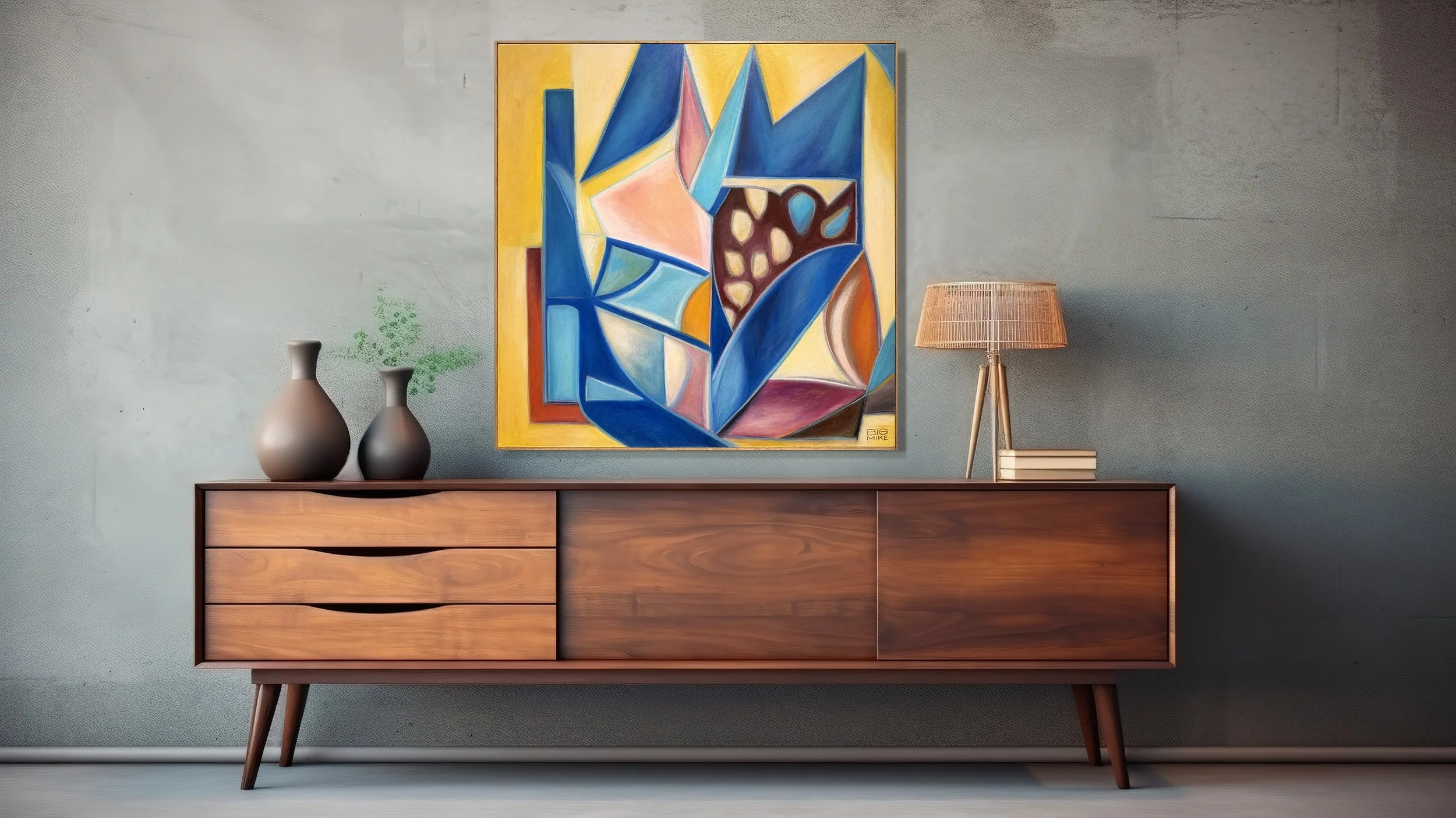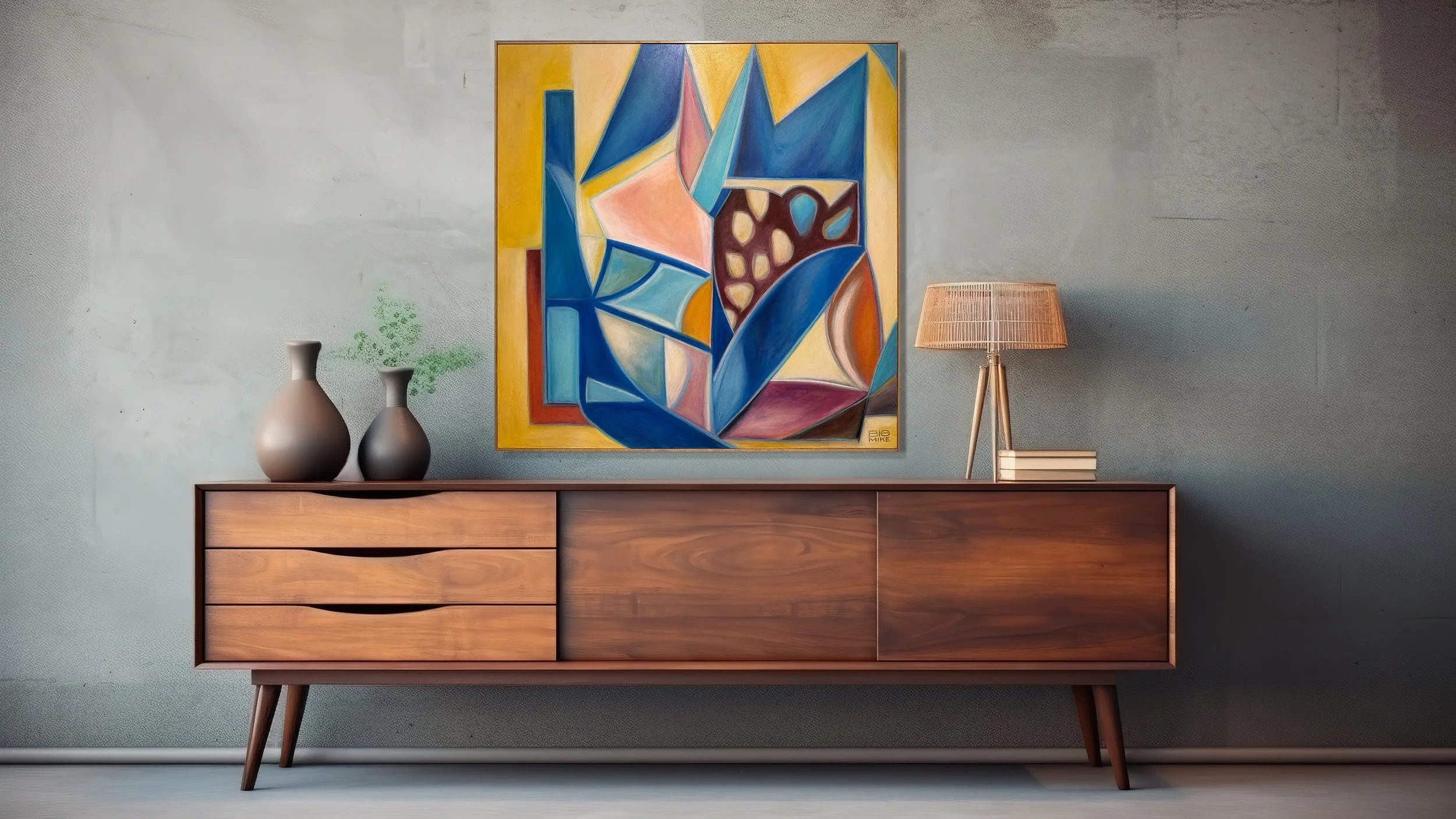 —I explore the tensions within American society, juxtaposing the ideals of unity and family with the realities of division and conflict. Through bold colors and abstract forms, the painting reflects the fractured yet interconnected nature of the country's diverse cultural landscape, inviting viewers to contemplate both the beauty and challenges of belonging.