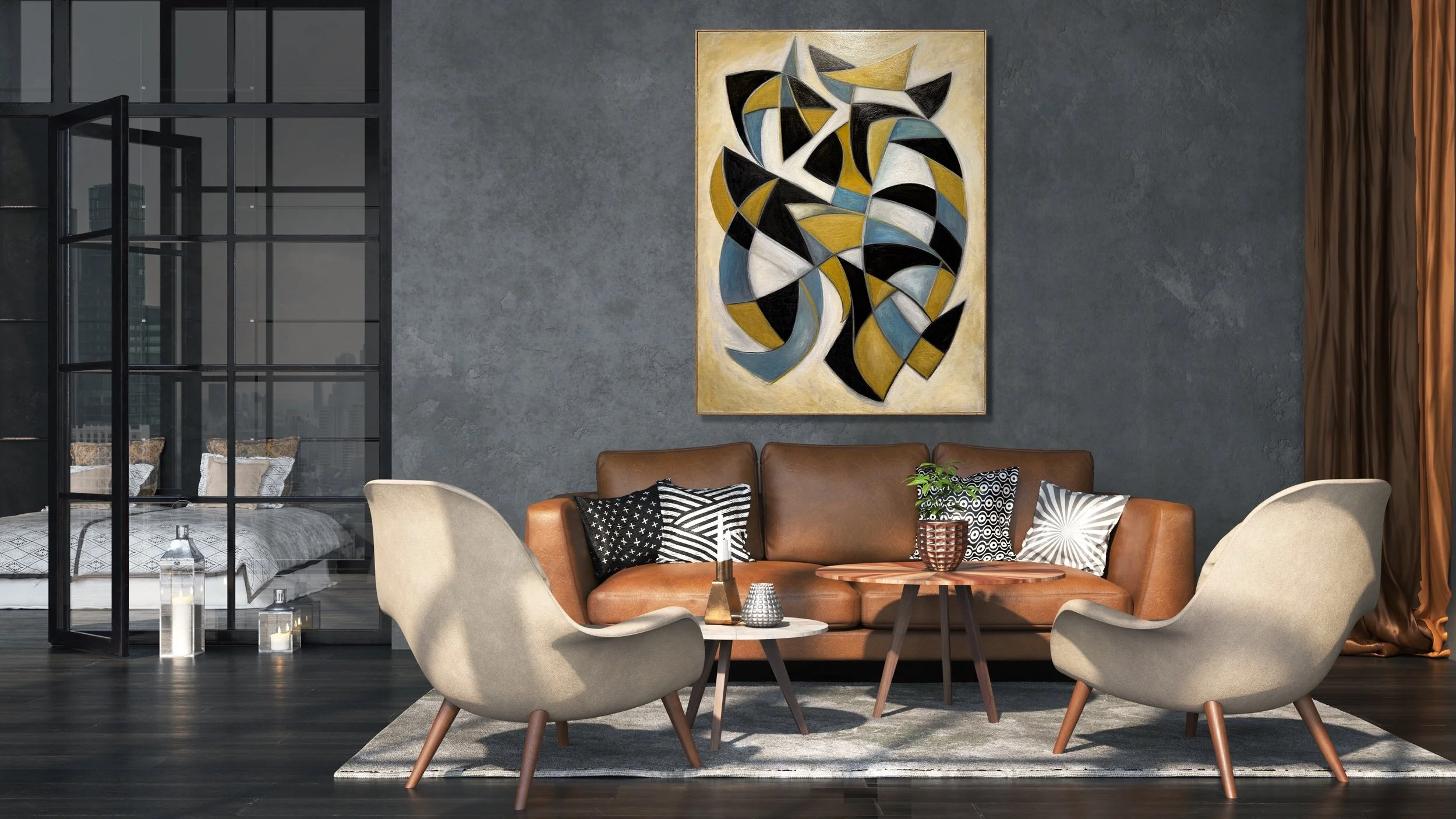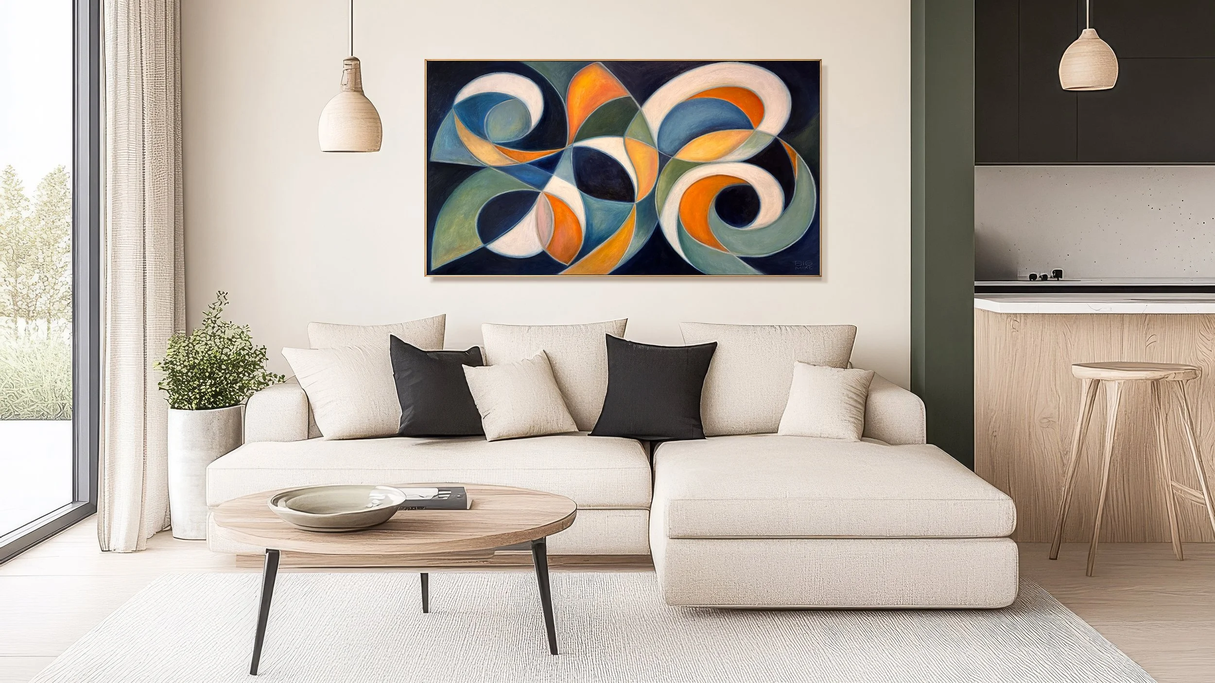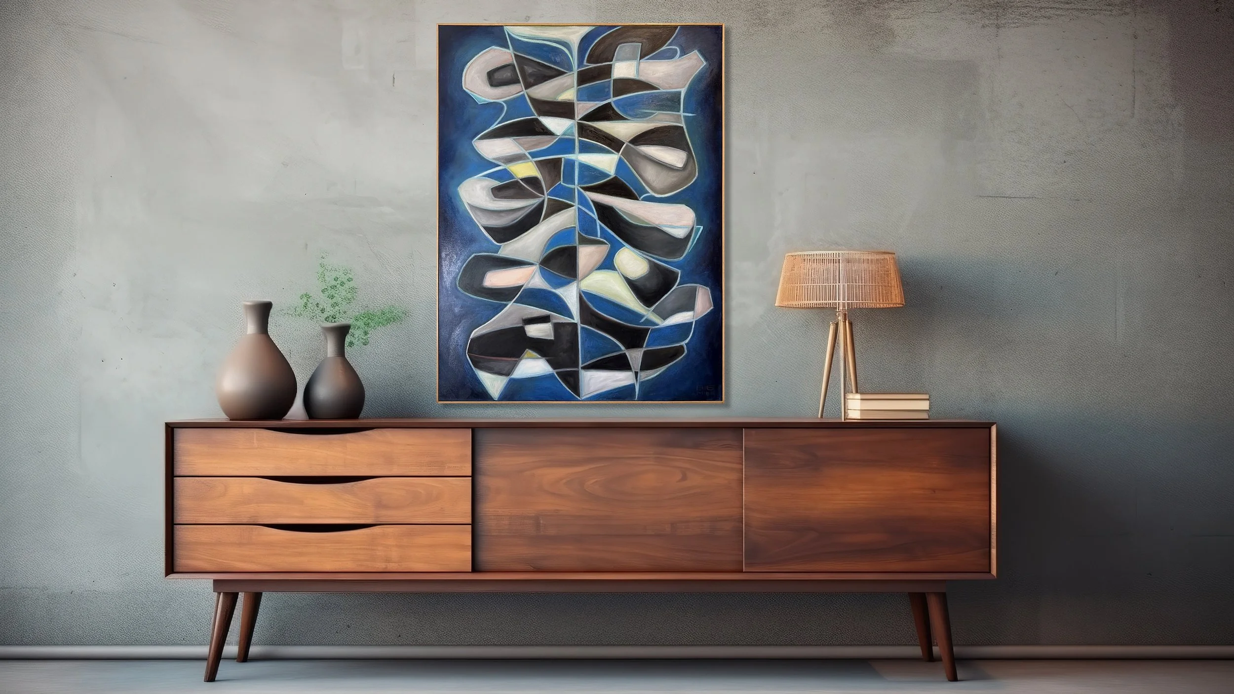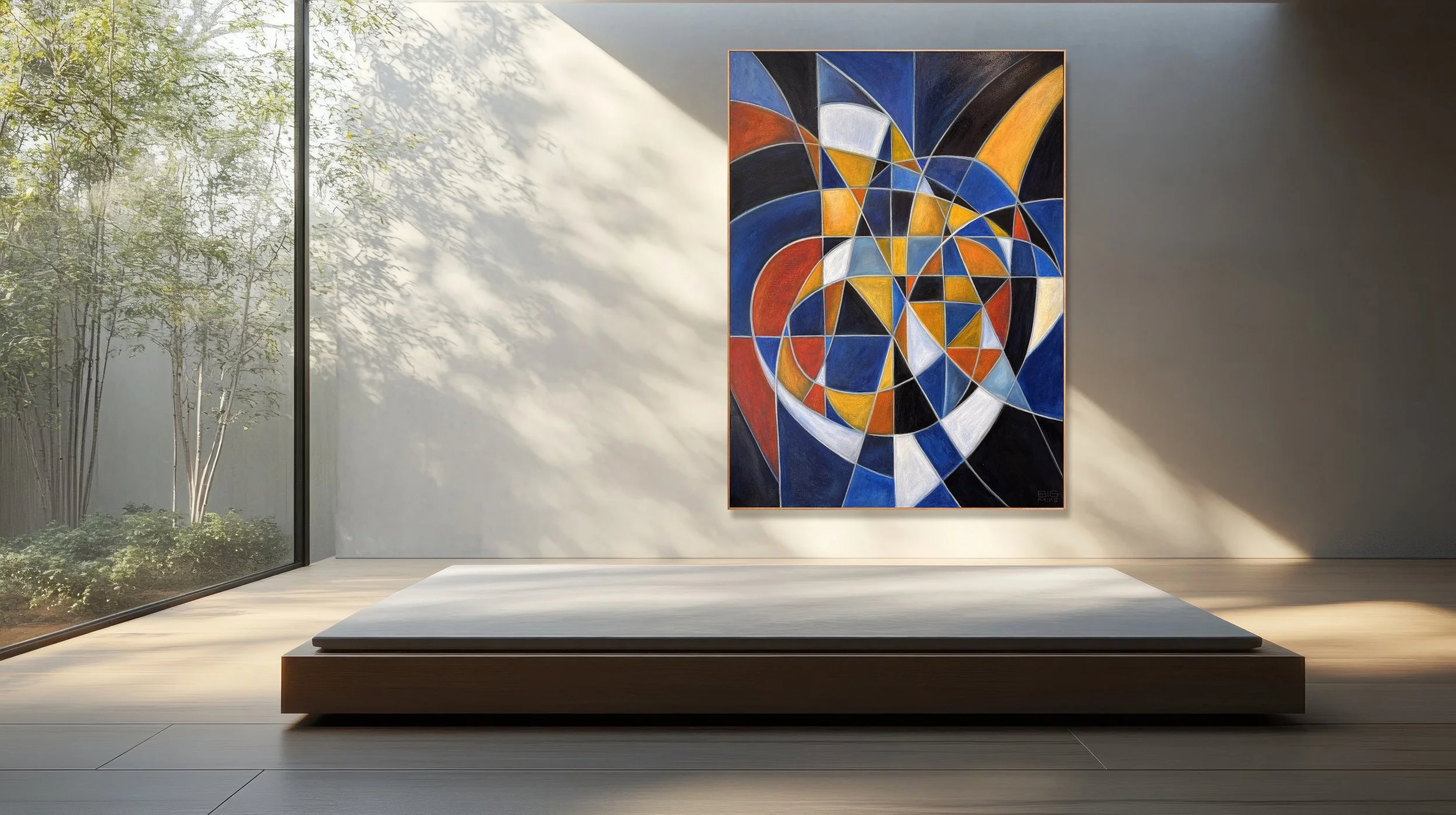 My Modern Sacred Geometry abstract painting series explores my stunning desert home and all it’s sublime modern style, eccentric history and ferocious natural beauty. I’m driven to re-imagine the Mid-century vibe with exotic, sacred, geometric worlds and lay it all down in a torrent of smudges, swirls, whips & hatches. Come visit my Gallery/Studio in Downtown Palm Springs, have a glass of wine and see what’s on the easel.