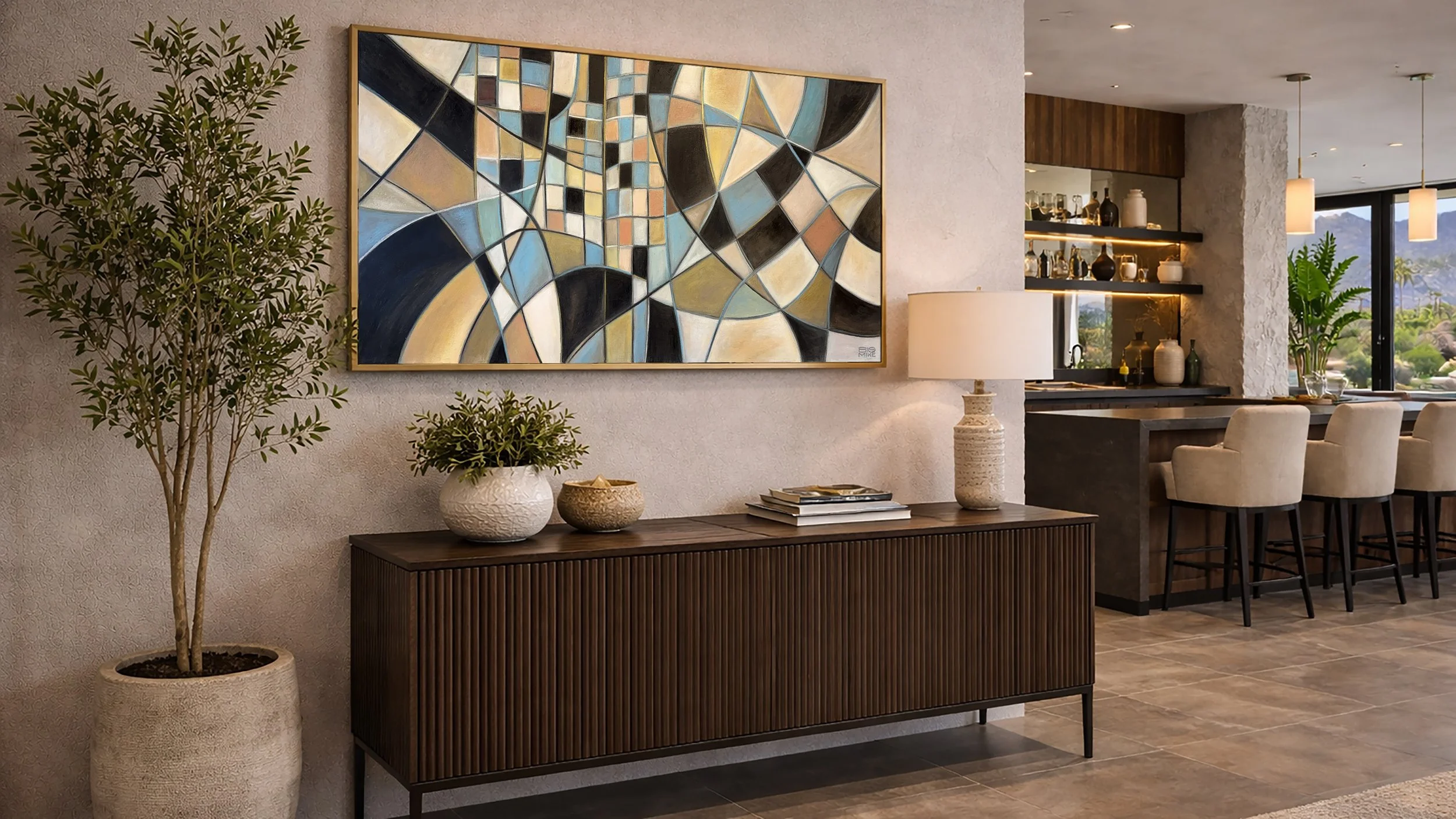 My Modern Sacred Geometry abstract paintings are inspired by my desert home in Palm Springs and the places I travel — from mid-century modern architecture